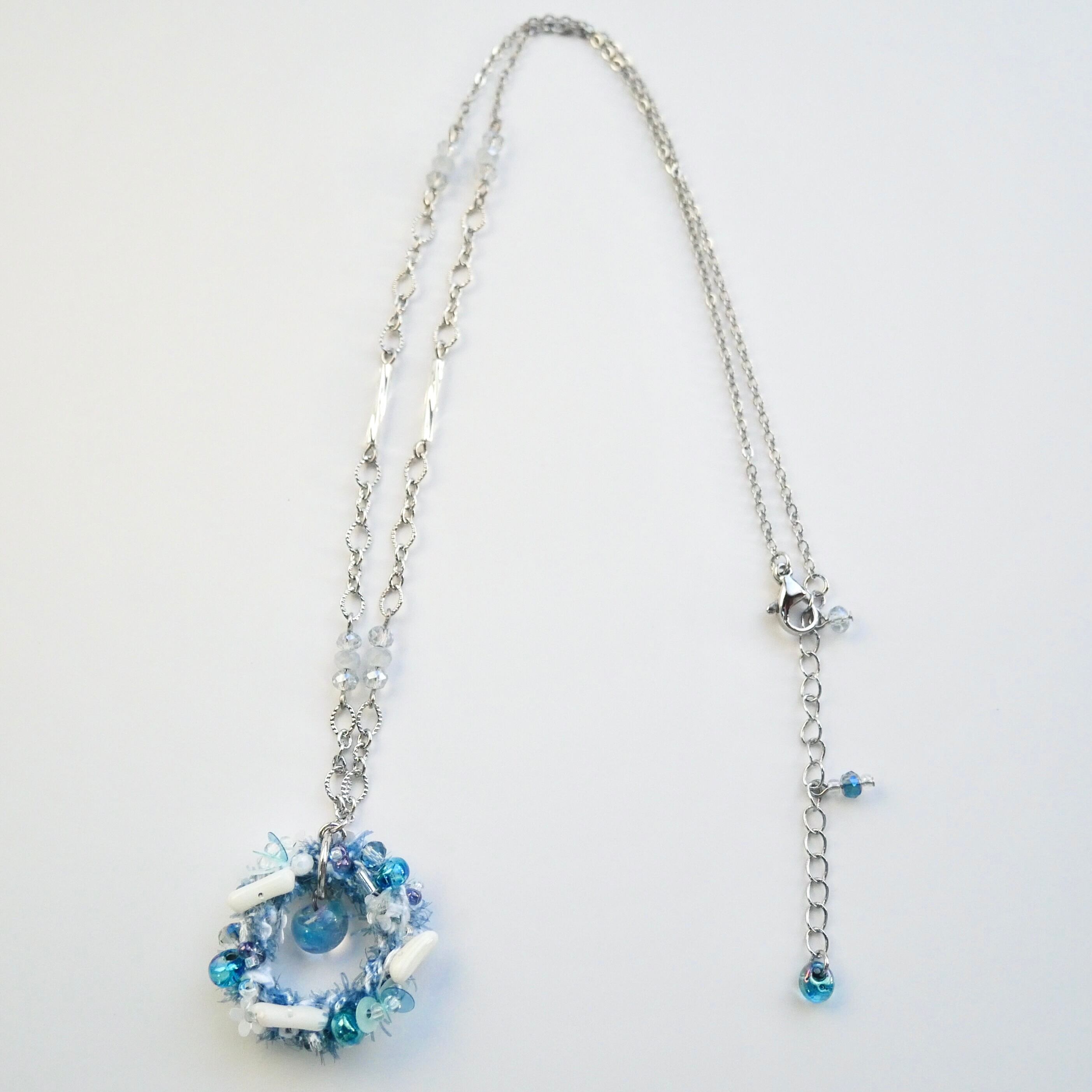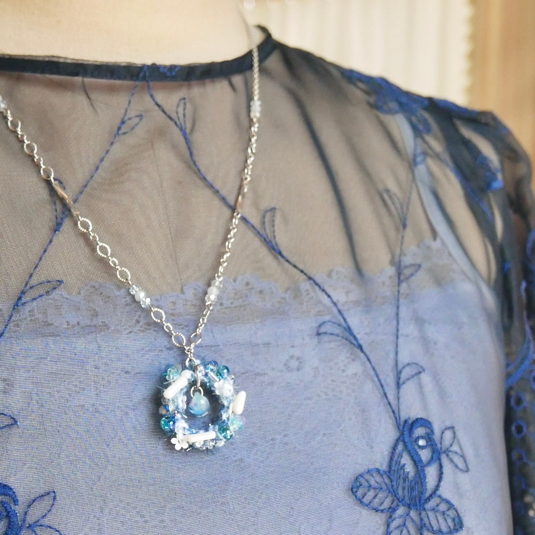 イルカのショーを見たときのイメージやイルカのバブルリングをイメージしたネックレスを作りました。