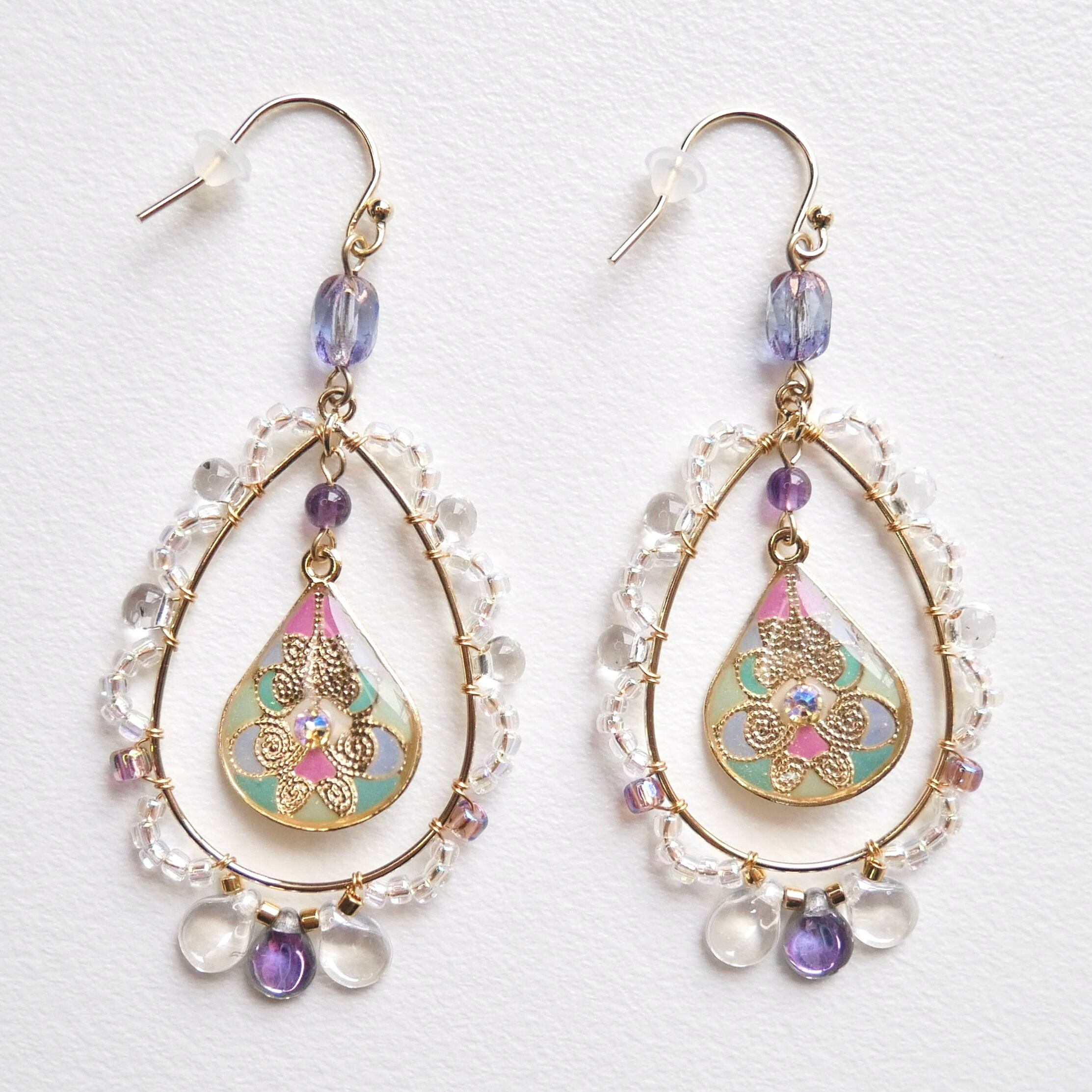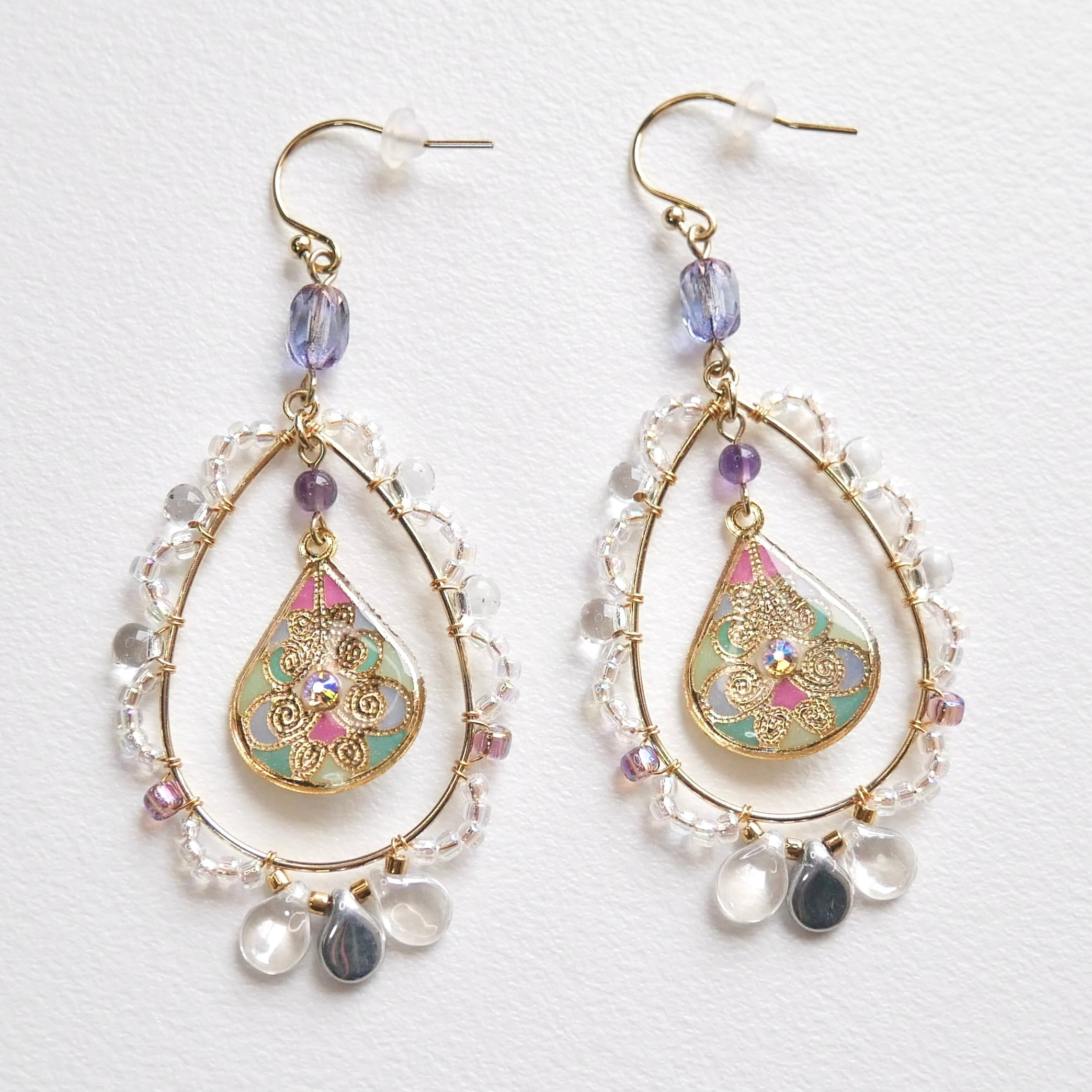 海外旅行した際に旅行先で見たステンドグラスをイメージしたピアス/イヤリングです。